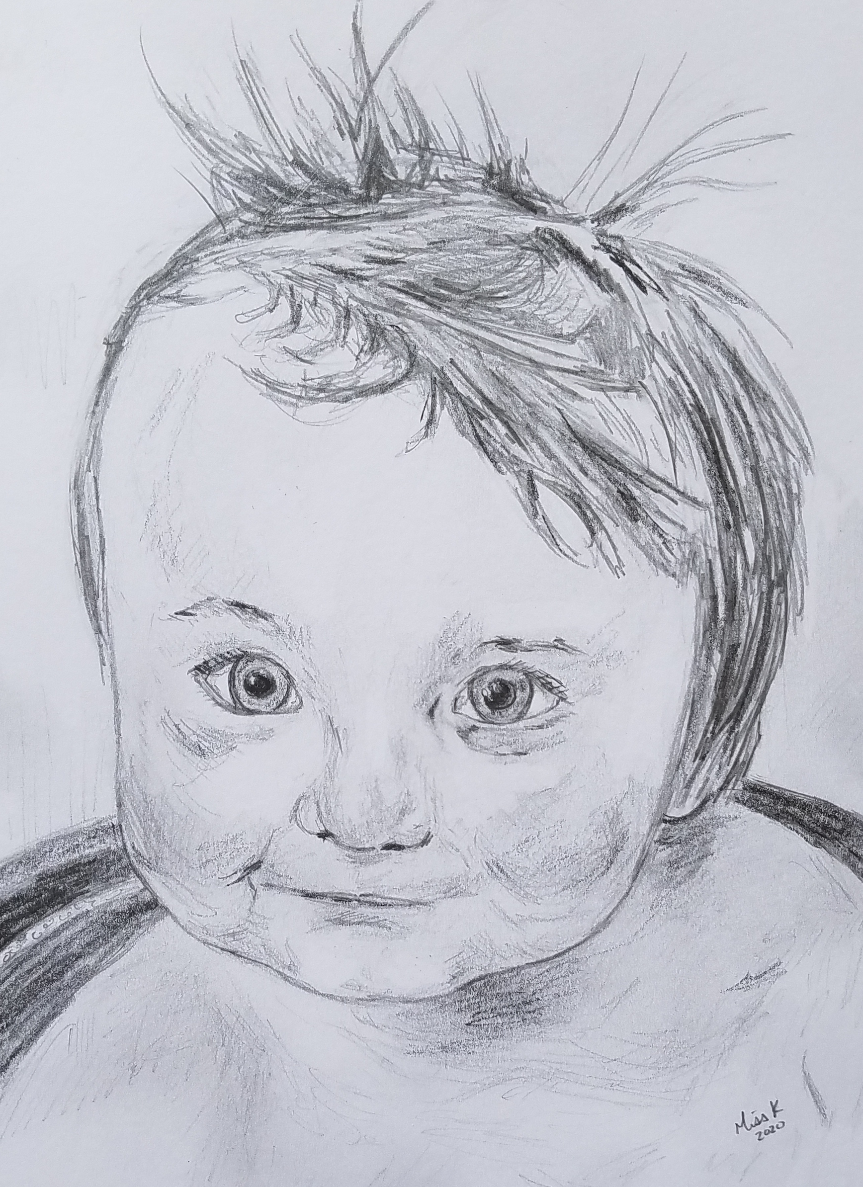 charcoal and chalk pastelLook at that happy face! Pencil and CharcoalLook at those eyes! This cat was a beauty! Pen and WatercolorPen and watercolorAs part of a community project, this piece was done for a young boy fighting cancer. A book of art was made for him to lift his spirits. This was my contribution. Pen and Watercolor